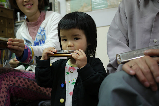 | 1Y11M 阿晴吹口琴 (一開始是聽公公吹,後來自己也會吹跟吸出聲音來!) |