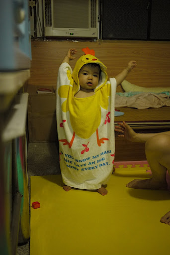 | 1歲3個月的~雞~雞~俠~(現在,2歲的阿晴穿雞雞俠已經不會拖到地上了) |